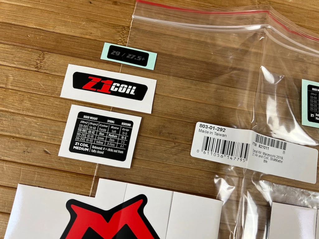 Decal Kit: Marzocchi 2019 Z1 Std/Matte Blk