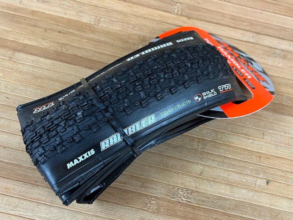 Maxxis erster echter Gravel Bike Reifen. Der Rambler hat das Volumen, das man für guten Komfort braucht, und das Profil, das man für Speed und Kontrolle braucht. Die eng stehenden Mittelstollen sind angeschrägt und rollen deshalb sehr gut auf hartem Untergrund, offen stehende Seitenstollen sorgen für gut berechenbares Kurvenverhalten bei unterschiedlichen Bodenverhältnissen.