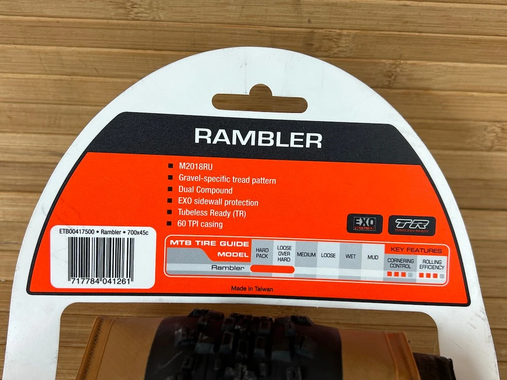 Maxxis erster echter Gravel Bike Reifen. Der Rambler hat das Volumen, das man für guten Komfort braucht, und das Profil, das man für Speed und Kontrolle braucht. Die eng stehenden Mittelstollen sind angeschrägt und rollen deshalb sehr gut auf hartem Untergrund, offen stehende Seitenstollen sorgen für gut berechenbares Kurvenverhalten bei unterschiedlichen Bodenverhältnissen.
