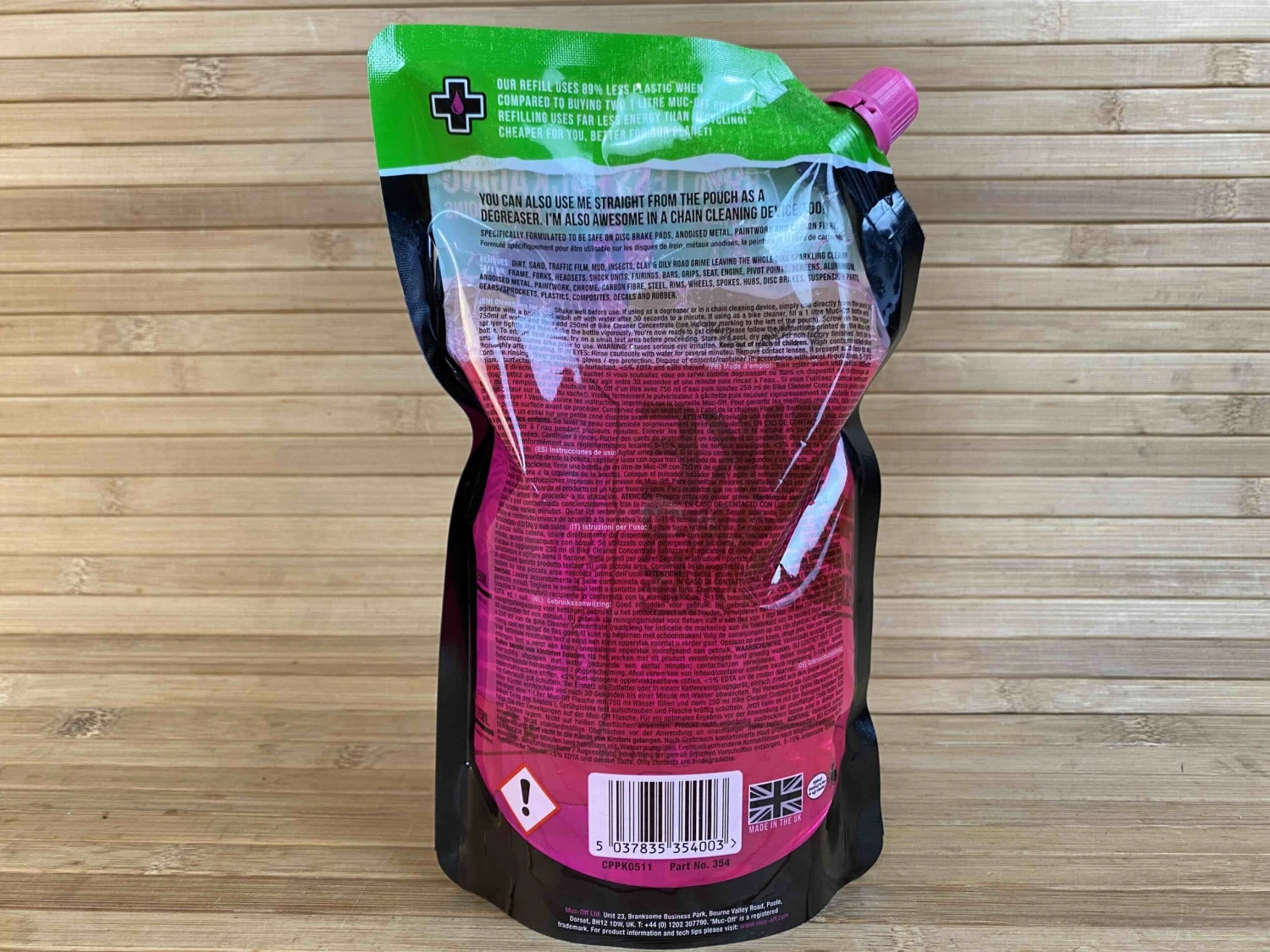– verwendet 89% weniger Verpackung als zwei 1,0 L Bike Cleaner