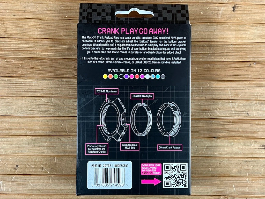 Der präzise CNC gefräste Muc Off Crank Preload Ring hilt, das seitliche Spiel am Tretlager zu beseitigen und die Lebensdauer des Tretlagers zu verlängern.