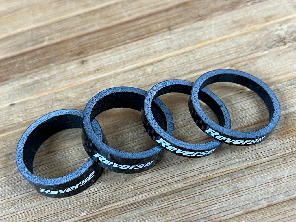 Stylische Carbonspacer mit Reverse Schriftzug.