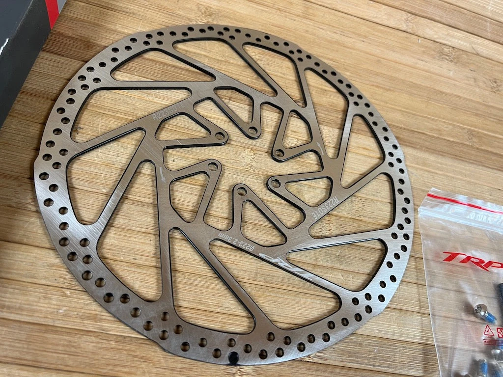 Die neue, einteilige Sechs-Loch-Scheibe von TRP kommt in 2,3 mm Dicke, erhältlich in allen Größen von 160 bis 203 mm.